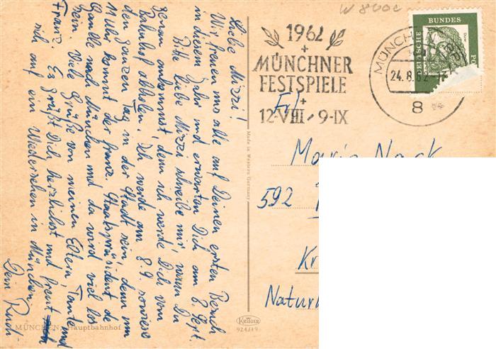 73914808 Muenchen Bayern Hauptbahnhof postalisch gelaufen Erhaltung siehe scans [WerneD78] alte Postkarte Wern Katcode 11110009162000