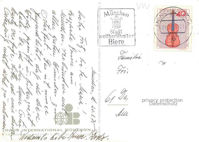 74104669 alte Postkarte MueNCHEN Bayern Haus International postalisch gelaufen Erhaltung siehe scans [WerneD78] KatCode: 11110009162000
