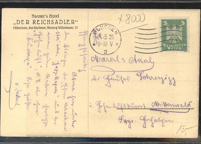 41243325 Muenchen Bayern Hausers Hotel Der Reichsadler postalisch gelaufen gute Erhaltung Alte Ansichtskarte Postkarte alte Postkarte Stef Katcode 11110009162000