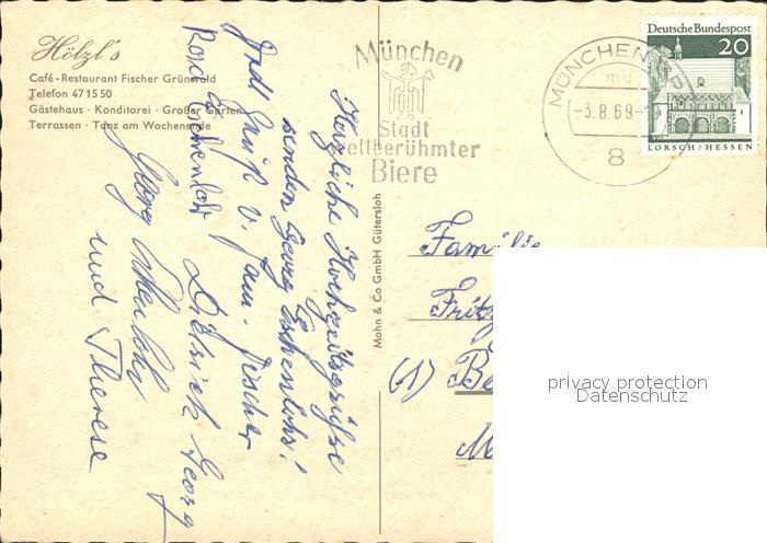 72157324 alte Postkarte Muenchen Bayern Hoelzls Cafe Restaurant Gruenwald Gruenwalder Schloss Speisesaal postalisch gelaufen Erhaltung siehe scans KatCode: 11110009162000