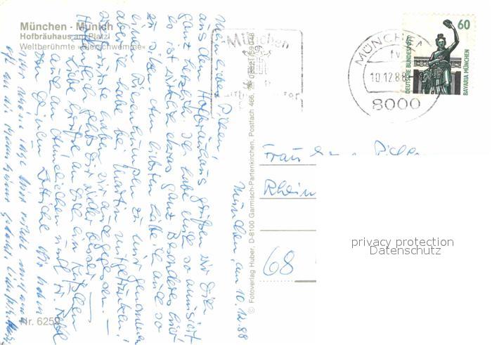 72899258 alte Postkarte Muenchen Bayern Hofbraeuhaus postalisch gelaufen Erhaltung siehe scans [NatalD47] KatCode: 11110009162000