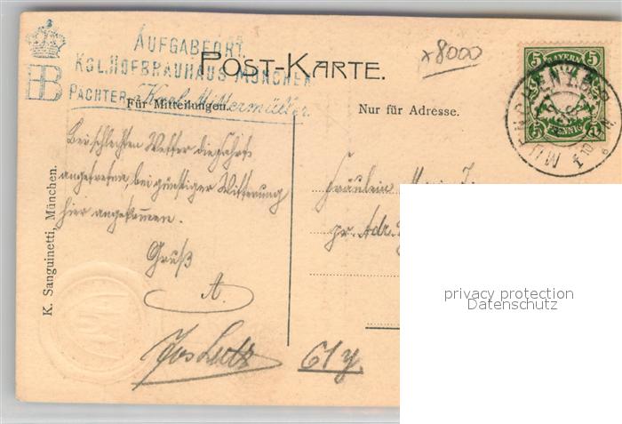 42934462 alte Postkarte Muenchen Bayern Hofbraeuhaus postalisch gelaufen Erhaltung siehe scans [KathaD81] KatCode: 11110009162000