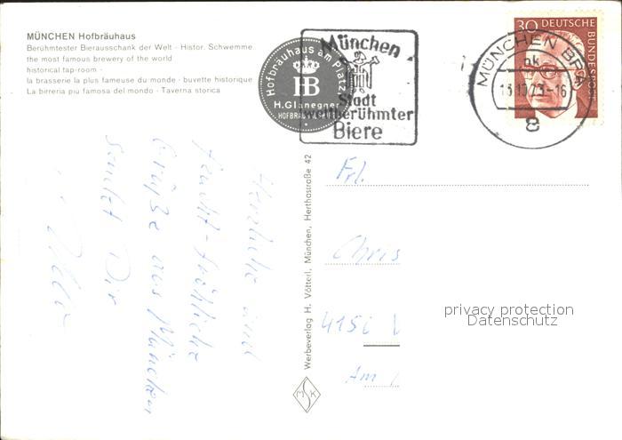 72238521 alte Postkarte Muenchen Bayern Hofbraeuhaus postalisch gelaufen Erhaltung siehe scans KatCode: 11110009162000