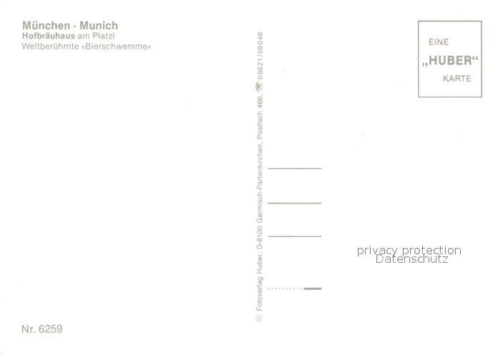 72937333 Muenchen Bayern Hofbraeuhaus am Platzl postalisch nicht gelaufen Erhaltung siehe scans [WerneD78] KatCode: 11110009162000