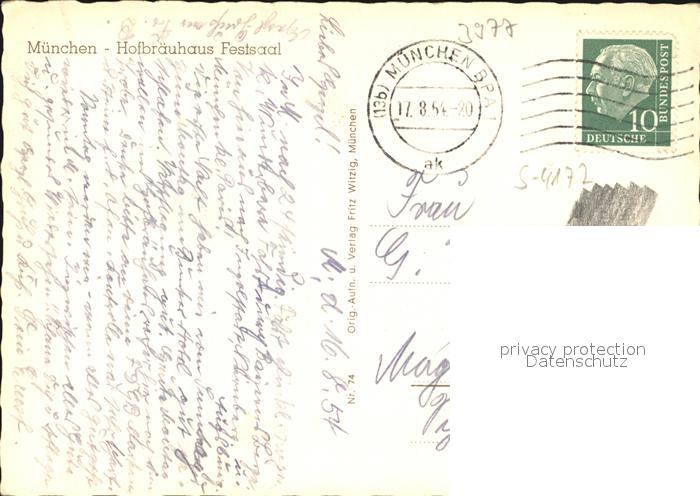 72462536 alte Postkarte Muenchen Bayern Hofbraeuhaus Festsaal postalisch gelaufen Erhaltung siehe scans KatCode: 11110009162000