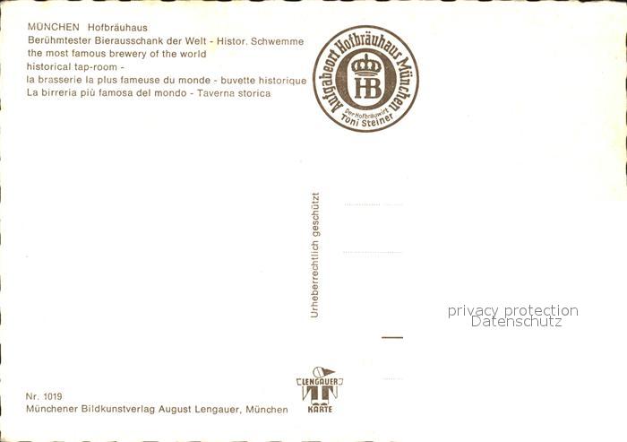 72496044 Muenchen Bayern Hofbraeuhaus innen postalisch nicht gelaufen Erhaltung siehe scans KatCode: 11110009162000