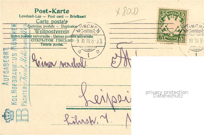 42964272 alte Postkarte Muenchen Bayern Hofbraeuhaus Prinzregent Luitpold von Bayern Kuenstlerkarte postalisch gelaufen Erhaltung siehe scans [KathaD81] KatCode: 11110009162000