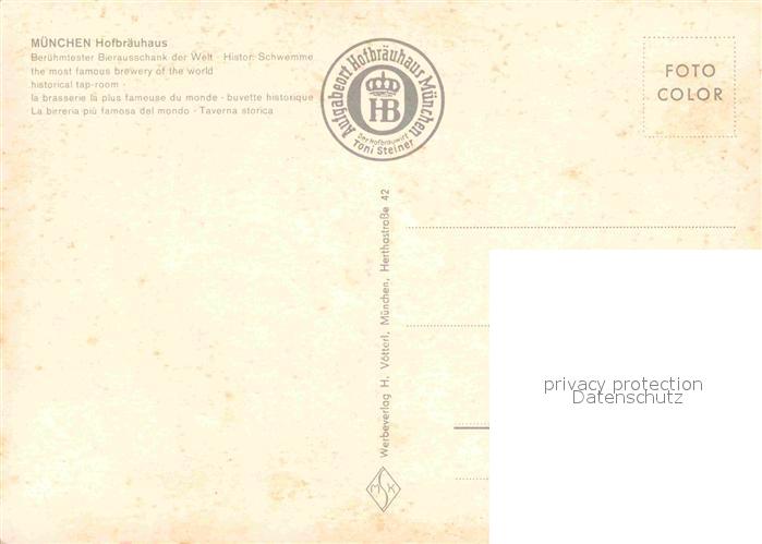 72901549 Muenchen Bayern Hofbraeuhaus postalisch nicht gelaufen Erhaltung siehe scans [FriedD77] KatCode: 11110009162000