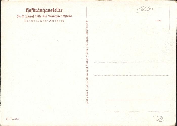 41062395 Muenchen Bayern Hofbraeuhauskeller postalisch nicht gelaufen Alte Ansichtskarte Postkarte Elvi Katcode 11110009162000