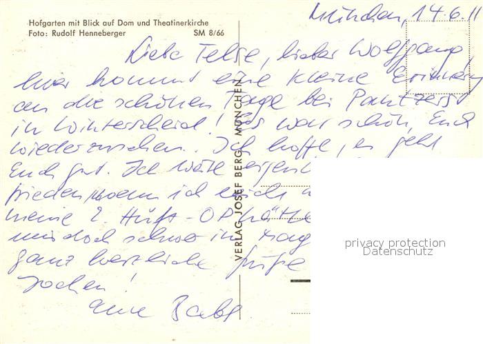 72958441 Muenchen Bayern Hofgarten Dom Theatinerkirche postalisch nicht gelaufen Erhaltung siehe scans [PaolaD17] KatCode: 11110009162000