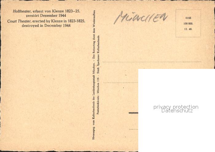 72149559 Muenchen Bayern Hoftheater zerstoert Dez 1944 Kuenstlerkarte postalisch nicht gelaufen Erhaltung siehe scans KatCode: 11110009162000