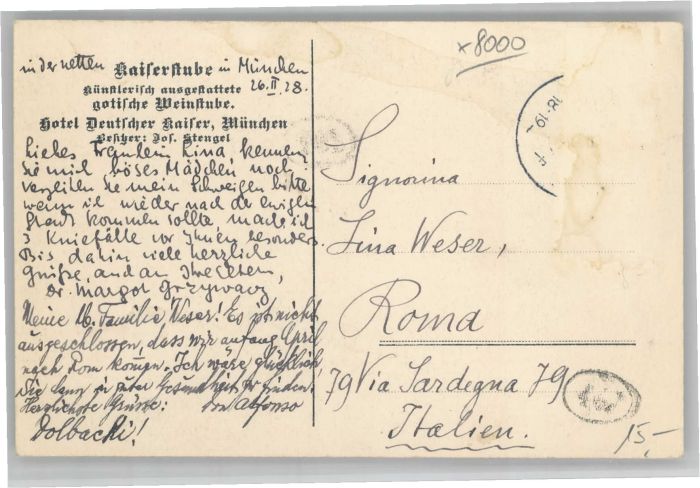 40742857 Muenchen Bayern Hotel Deutscher Kaiser Kaiserstube postalisch gelaufen Alte Ansichtskarte Postkarte alte Postkarte Katcode 11110009162000