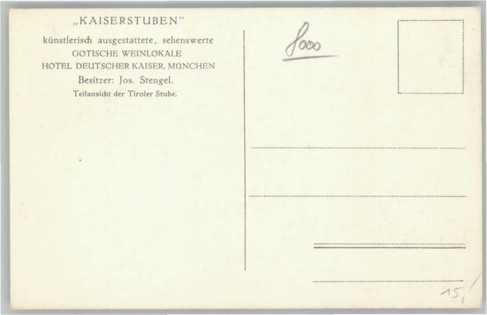 40742911 Muenchen Bayern Hotel Deutscher Kaiser Kaiserstube postalisch nicht gelaufen Alte Ansichtskarte Postkarte Katcode 11110009162000