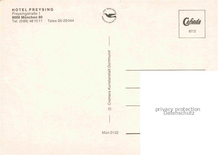 74042489 Muenchen Bayern Hotel Preyding postalisch nicht gelaufen Erhaltung siehe scans [WerneD78] Wern Katcode 11110009162000