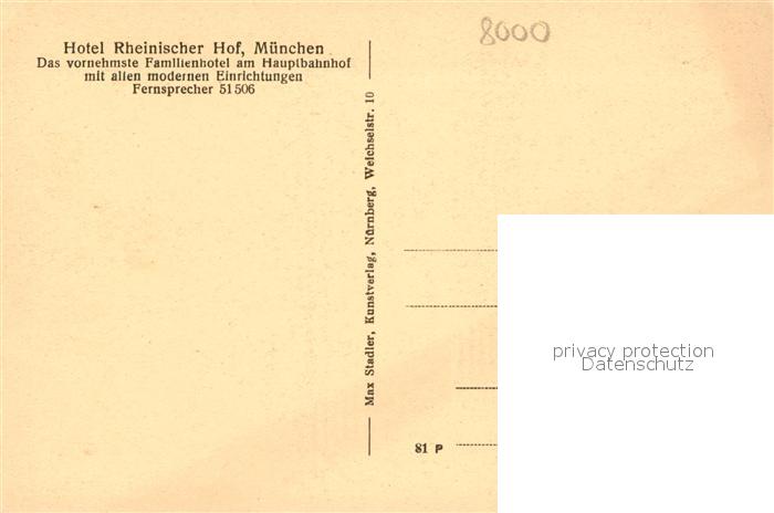 42933867 Muenchen Bayern Hotel Rheinischer Hof Grosser Speisesaal postalisch nicht gelaufen Erhaltung siehe scans [KathaD81] Kath Katcode 11110009162000