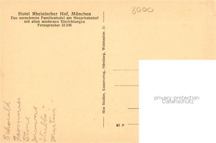 42933874 Muenchen Bayern Hotel Rheinischer Hof Grosser Speisesaal postalisch nicht gelaufen Erhaltung siehe scans [KathaD81] KatCode: 11110009162000