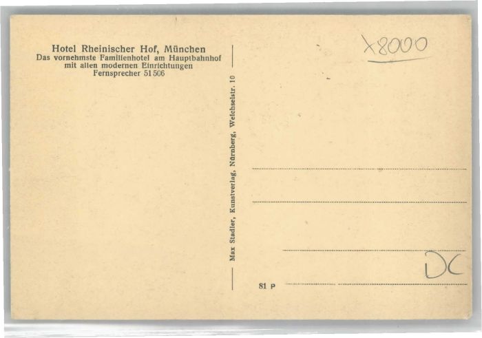 40742954 Muenchen Bayern Hotel Rheinischer Hof Speisesaal postalisch nicht gelaufen Alte Ansichtskarte Postkarte Katcode 11110009162000