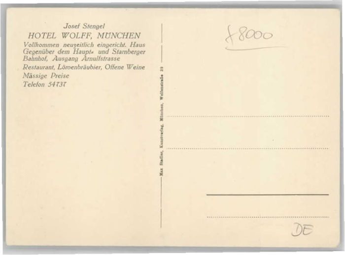 40638257 Muenchen Bayern Hotel Wolff postalisch nicht gelaufen Alte Ansichtskarte Postkarte Katcode 11110009162000