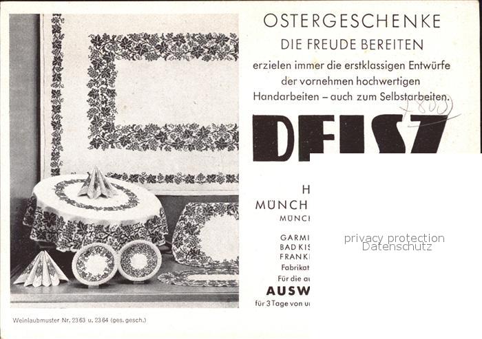 41545927 Muenchen Bayern Im Schatten des Domes Deisz Handarbeit Stickereien Werbekarte postalisch nicht gelaufen Erhaltung siehe scans Alte Ansichtskarte Postkarte hz_L Katcode 11110009162000