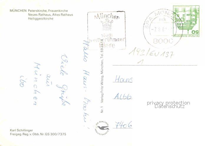 72779648 alte Postkarte Muenchen Bayern Innenstadt mit Peterskirche Frauenkirche Rathaus Heiliggeistkirche Fliegeraufnahme postalisch gelaufen Erhaltung siehe scans [FriedD77] KatCode: 11110009162000