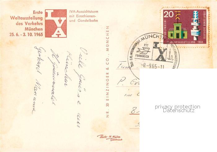 73834012 Muenchen Bayern IVA Aussichtsturm mit Einschienen und Gondelbahn postalisch gelaufen Erhaltung siehe scans [WerneD78] alte Postkarte Wern Katcode 11110009162000