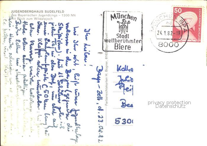 72376910 alte Postkarte Muenchen Bayern Jugendherberge Sudelfeld mit Wildalpjoch postalisch gelaufen Erhaltung siehe scans KatCode: 11110009162000