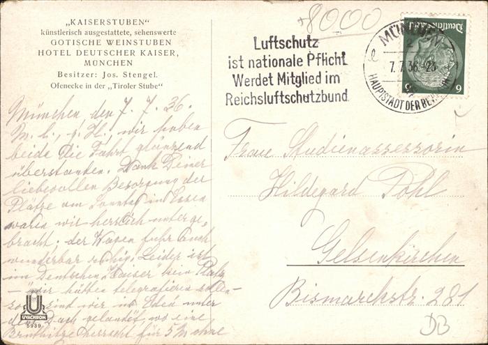 41058786 Muenchen Bayern Kaiserstuben postalisch gelaufen Alte Ansichtskarte Postkarte alte Postkarte Elvi Katcode 11110009162000
