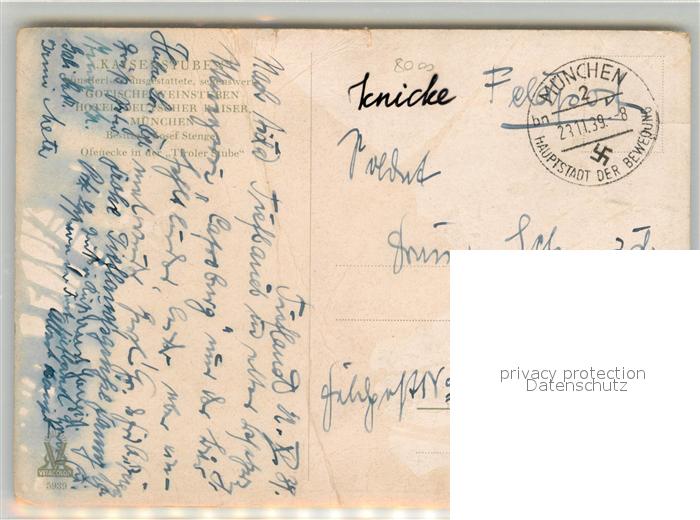 43183697 Muenchen Bayern Kaiserstuben Hotel Deutscher Kaiser NZ4 postalisch gelaufen Feldpost Erhaltung siehe scans [FriedD77] Feldpost alte Postkarte Frie Katcode 11110009162000