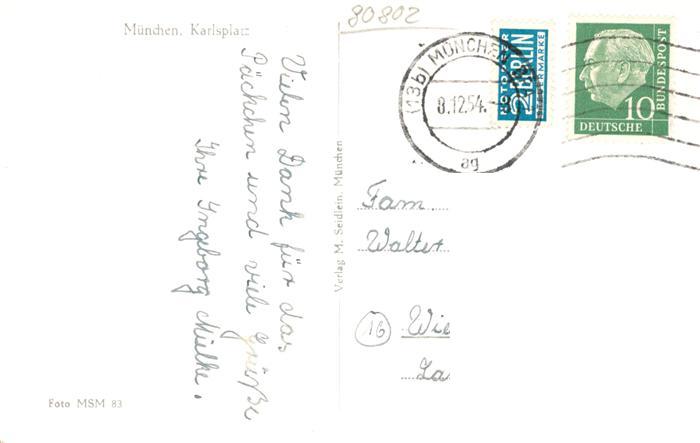 73949178 Muenchen Bayern Karlsplatz postalisch gelaufen Erhaltung siehe scans [FriedD77] alte Postkarte Frie Katcode 11110009162000