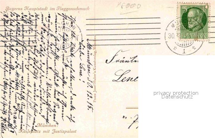 42692058 alte Postkarte Muenchen Bayern Karlsplatz justizpalasi im Flaggenschmuck postalisch gelaufen Erhaltung siehe scans [AndreD76] KatCode: 11110009162000