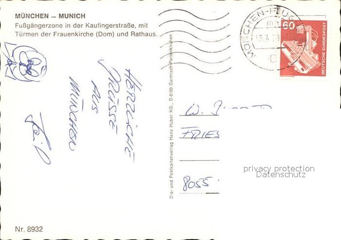 72470330 alte Postkarte Muenchen Bayern Kaufingerstrasse mit Frauenkirche Dom Rathaus postalisch gelaufen Erhaltung siehe scans KatCode: 11110009162000