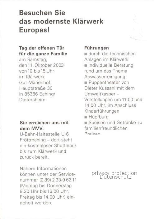 72149406 Muenchen Bayern Klaerwerk Tag der offenen Tuer postalisch nicht gelaufen Werbekarte (keine Postkarte) Erhaltung siehe scans KatCode: 11110009162000