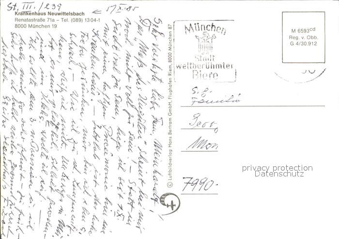 72515499 alte Postkarte Muenchen Bayern Krankenhaus Neuwittelsbach Fliegeraufnahme postalisch gelaufen Erhaltung siehe scans KatCode: 11110009162000
