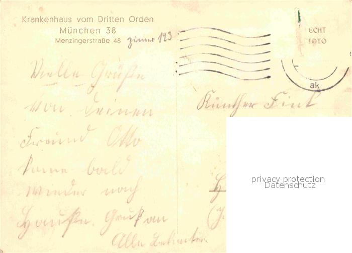 72871268 alte Postkarte Muenchen Bayern Krankenhaus vom Dritten Orden postalisch gelaufen Erhaltung siehe scans [NatalD47] KatCode: 11110009162000
