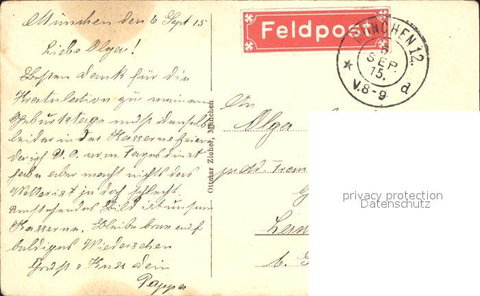 41994287 alte Postkarte Muenchen Bayern Kriegskaserne Schrenkschule postalisch gelaufen Feldpost Erhaltung siehe scans KatCode: 11110009162000