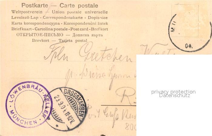 42933837 alte Postkarte Muenchen Bayern Loewenbraeu Keller postalisch gelaufen Erhaltung siehe scans [KathaD81] KatCode: 11110009162000