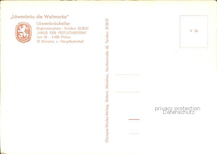 72529128 Muenchen Bayern Loewenbraeukeller Gastraum postalisch nicht gelaufen Erhaltung siehe scans KatCode: 11110009162000