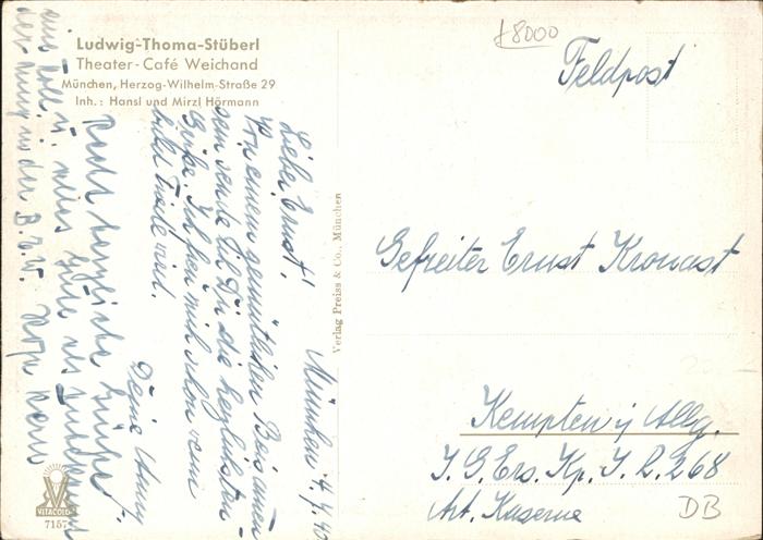 41058789 Muenchen Bayern Ludwig Thoma Stueberl postalisch nicht gelaufen Alte Ansichtskarte Postkarte Elvi Katcode 11110009162000
