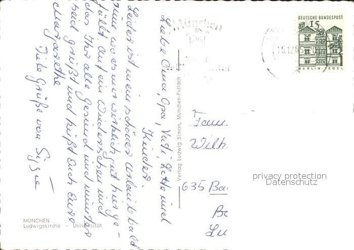 72570604 alte Postkarte Muenchen Bayern Ludwigskirche Universitaet postalisch gelaufen Erhaltung siehe scans [AndreD76] KatCode: 11110009162000