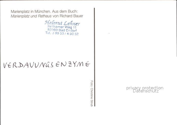 72390239 Muenchen Bayern Marienplatz postalisch nicht gelaufen Erhaltung siehe scans KatCode: 11110009162000
