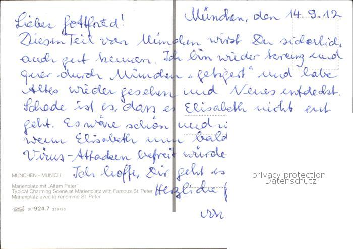 72582086 Muenchen Bayern Marienplatz mit Altem Peter postalisch nicht gelaufen Erhaltung siehe scans [WerneD78] KatCode: 11110009162000