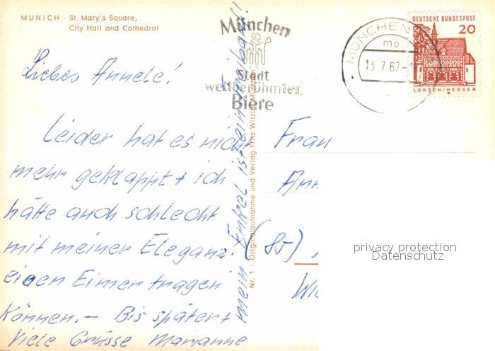 72707278 alte Postkarte Muenchen Bayern Marienplatz mit Rathaus und Frauenkirche postalisch gelaufen Erhaltung siehe scans [WerneD78] KatCode: 11110009162000