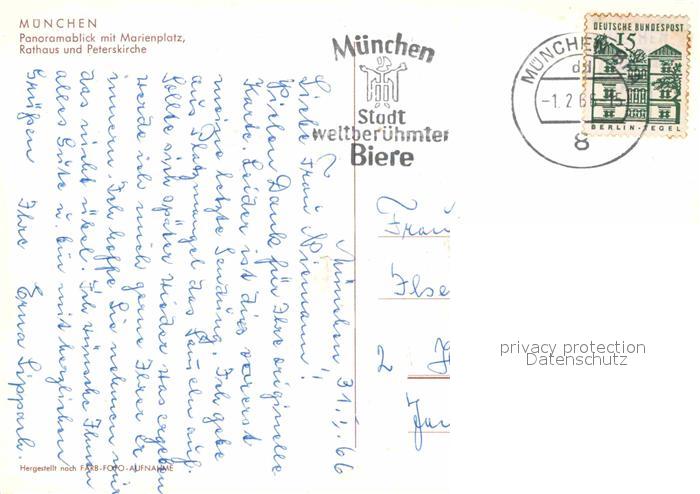 72769760 alte Postkarte Muenchen Bayern Marienplatz Rathaus Peterskirche postalisch gelaufen Erhaltung siehe scans [NatalD47] KatCode: 11110009162000