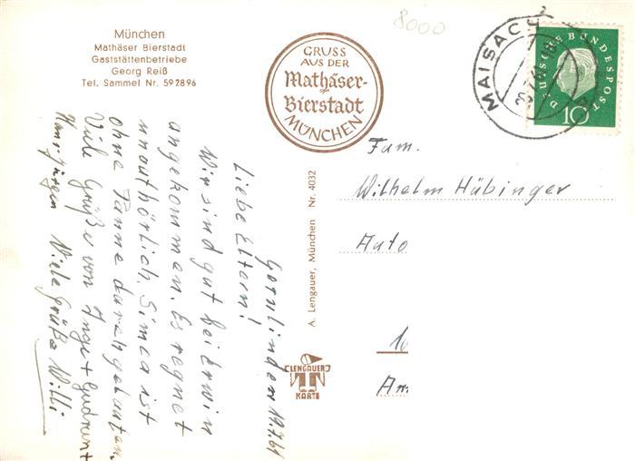 73890106 Muenchen Bayern Mathaeser Bierstadt Muenchener Stuben Veranstaltung Schwemme mit Hauptschaenke postalisch gelaufen Erhaltung siehe scans [WerneD78] alte Postkarte Wern Katcode 11110009162000