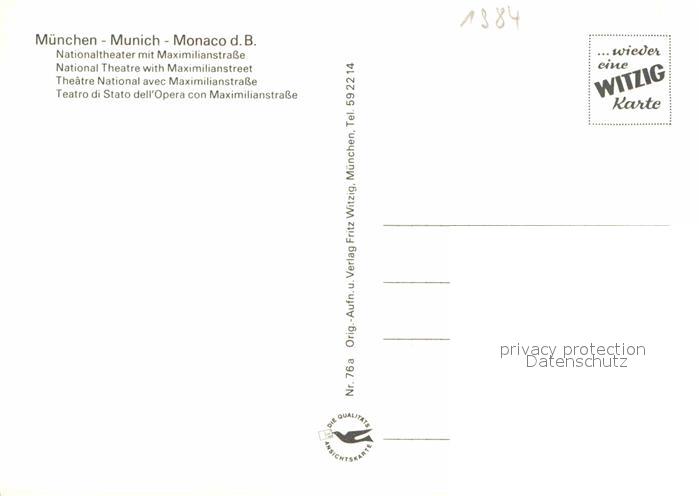 72896374 Muenchen Bayern Nationaltheater mit Maximilianstrasse postalisch nicht gelaufen Erhaltung siehe scans [LiesaD40] KatCode: 11110009162000