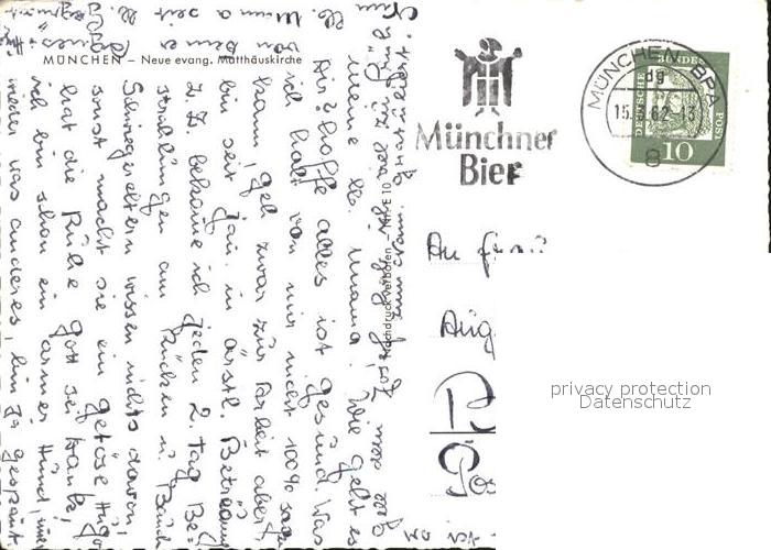 72052017 alte Postkarte Muenchen Bayern Neue evang. Matthaeuskirche postalisch gelaufen Erhaltung siehe scans KatCode: 11110009162000