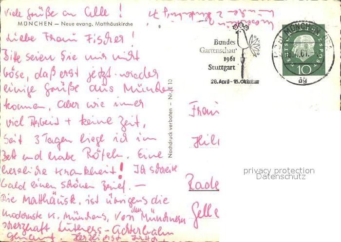 72373291 alte Postkarte Muenchen Bayern Neue evangelische Matthaeuskirche postalisch gelaufen Erhaltung siehe scans KatCode: 11110009162000