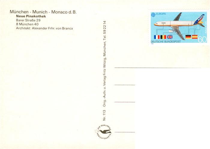 73882974 Muenchen Bayern Neue Pinakothek postalisch gelaufen Erhaltung siehe scans [WerneD78] alte Postkarte Wern Katcode 11110009162000