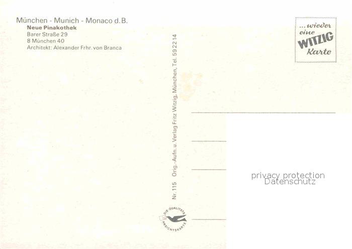 72889000 Muenchen Bayern Neue Pinakothek postalisch nicht gelaufen Erhaltung siehe scans [LiesaD40] KatCode: 11110009162000
