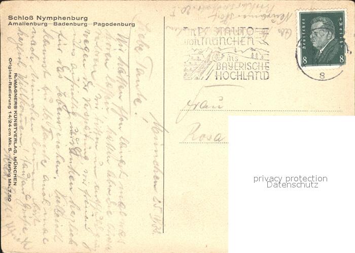 72330034 alte Postkarte Muenchen Bayern Nymphenburg Amalienburg Badenburg Pagodenburg postalisch gelaufen Erhaltung siehe scans KatCode: 11110009162000